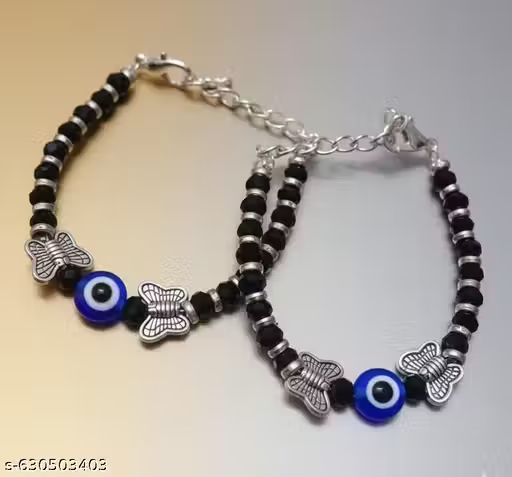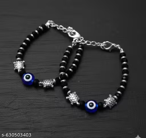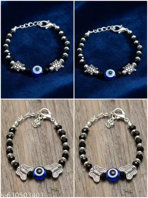 Name: 2 combo pair Stylish bachcho ke nazariya kid nazariya nazariya for babyblack silver stone evil eye nazariya pair bracelet for baby boy and girl (2-3) year baby..