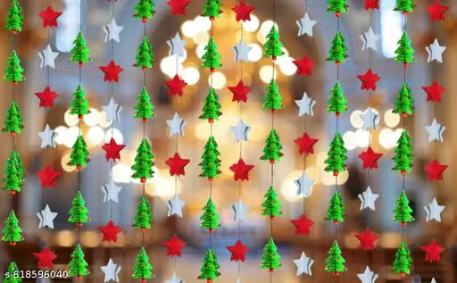 Name : 3D Merry Christmas Tree Star Hanging Frills Garland Pack of 4 Pcs