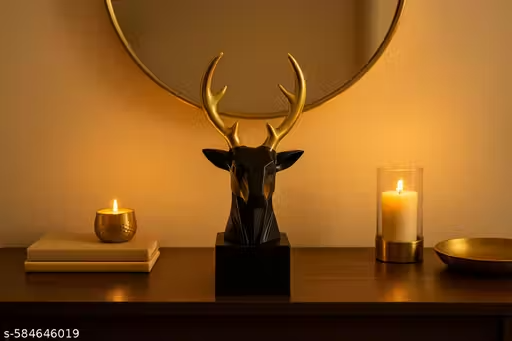 Name : AABCO Luxury Black Deer Head Showpiece with Golden Antlers