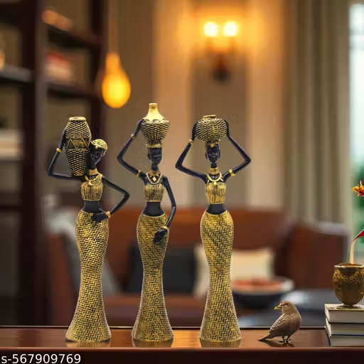 Name : aaBco Poly resin Hand Crafted African Lady Set Of 3 | | Modern art Sculpture | Decorative Show piece For Home Decor | Office Decor | Bed room décor | Table Top | Living room décor Ideal For Gifting