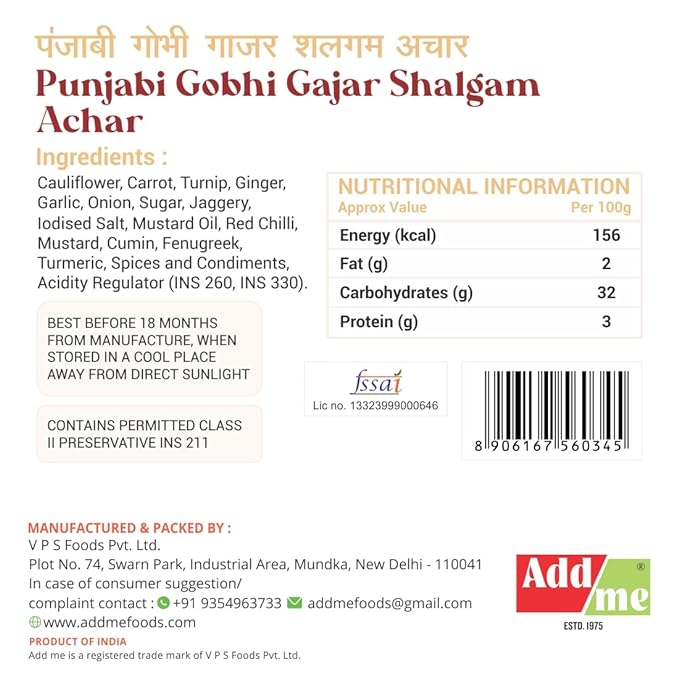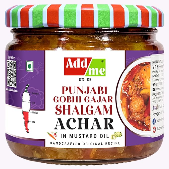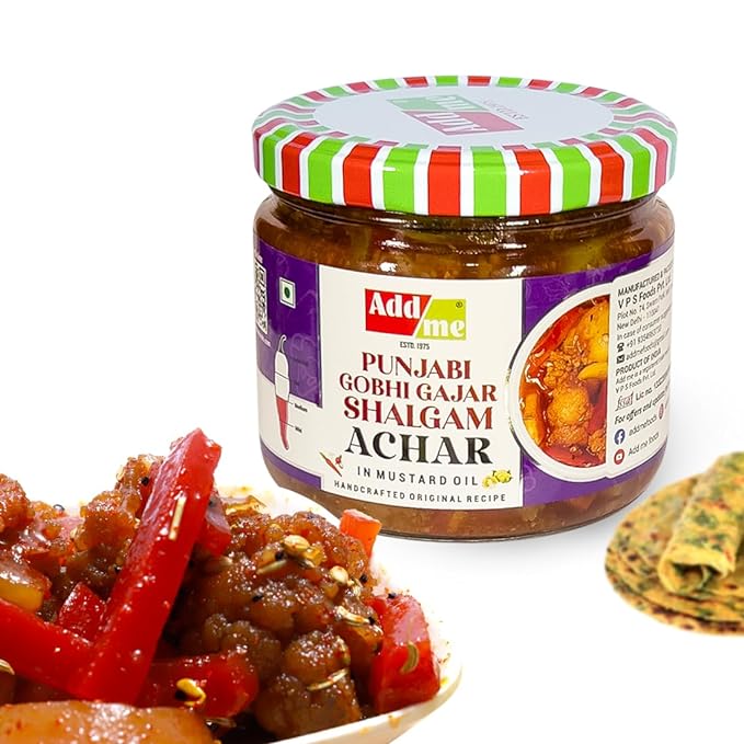 Add Me Gobhi gajar Shalgam Pickle 350g, Homemade Fresh Sweet & Sour Mixed Pickle of Cauliflower, Carrot & Turnip | Indian Pickles in Mustard Oil Vintage Recipe