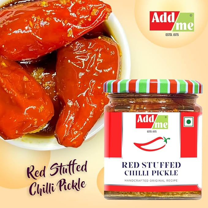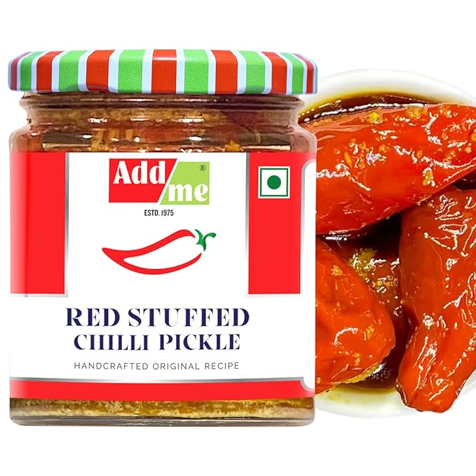 Add me Red Stuffed King Chilli Pickles 200gm lal mirch ka Bharwa Banarasi Masala mirchi ka achar 200g Glass Jar