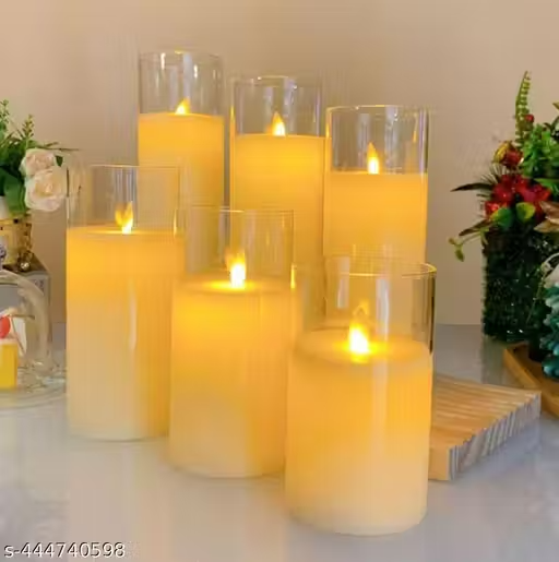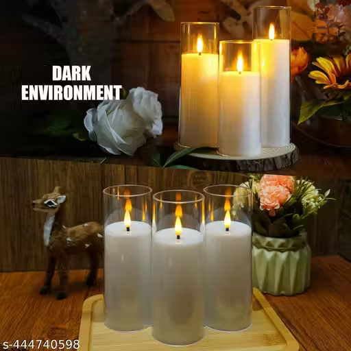 Name : Adorazone 3 Pcs Acrylic Plastic Wireless LED Pillar Candles Flameless and Smokeless Decorative Candles led Candle | Glass Look Pillar Candles, Lights and Decorations for Home Decor | Valentine day Decorations, House, Balcony, Birthday, Wedding Decoration (Size- 12.5x10x8 cm)