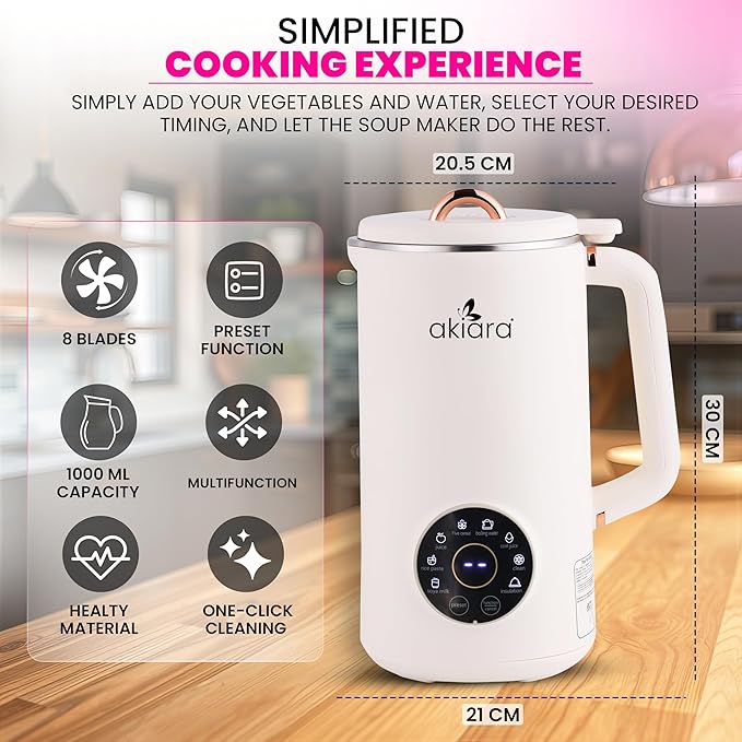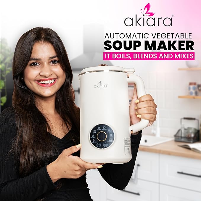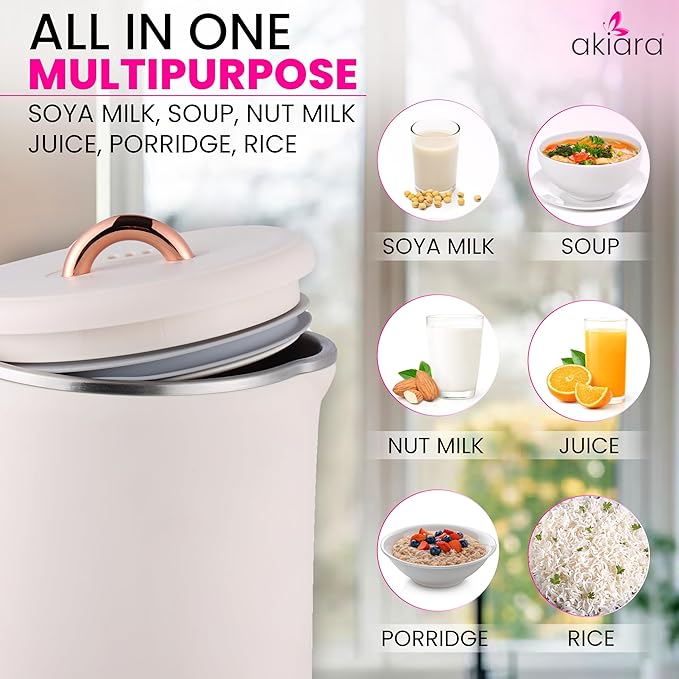 Akiara Automatic Vegetable Soup Maker, Soy Milk, Nuts Milk, Healthy Juice, Rice Maker, Poridge, Boils Water, Auto Clean, 5 in 1 Functions, It Boils, Blends and Mixes – Multifunctional Use