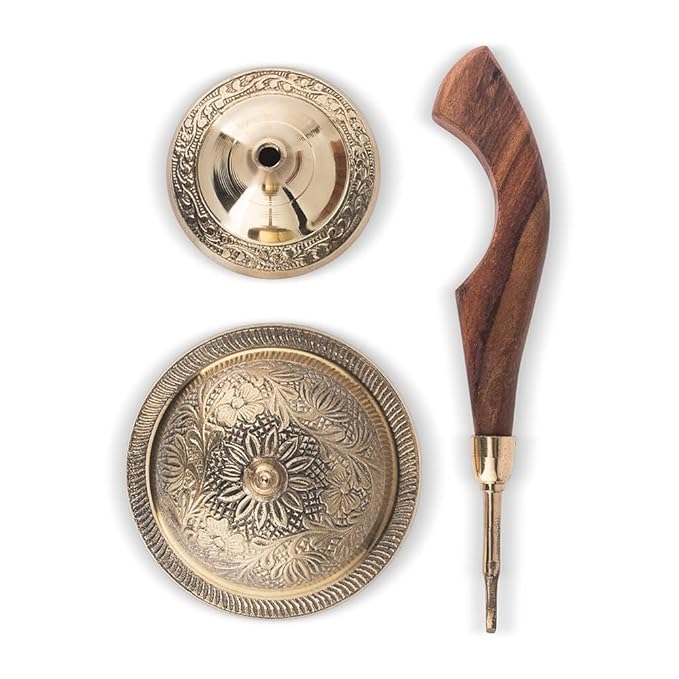 Alodie – Brass Sambrani Stand & Loban Dhoop Dani Burner with Wooden Handle for Kapur – Sambrani Dhoop Holder Pooja Items for Home (Small 8.7×3.1×2.5)