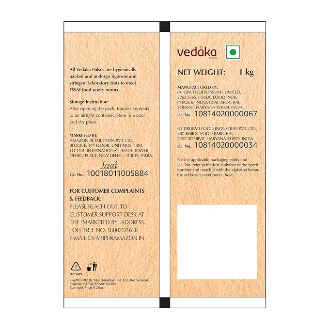 - Vedaka ensures the hygiene and quality of its Pulses through meticulous packaging and rigorous laboratory testing, adhering to the food safety standards set by FSSAI