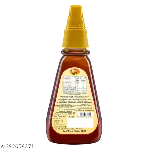 Name : ANP BEE® Natural Honey Squeezy Pack 400g I 100% Pure, Spill Proof Pack, Portion Control I No Sugar Adulteration, Natural Immunity Booster I Pack of 2