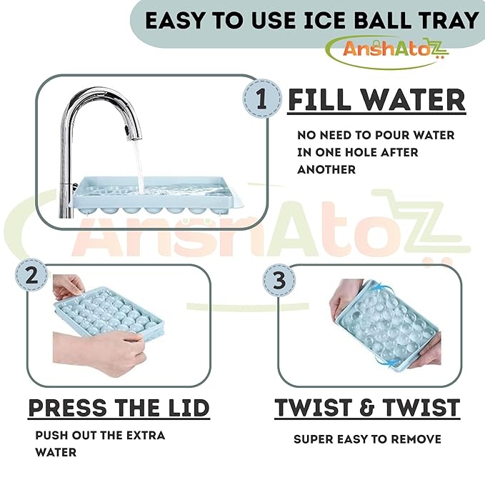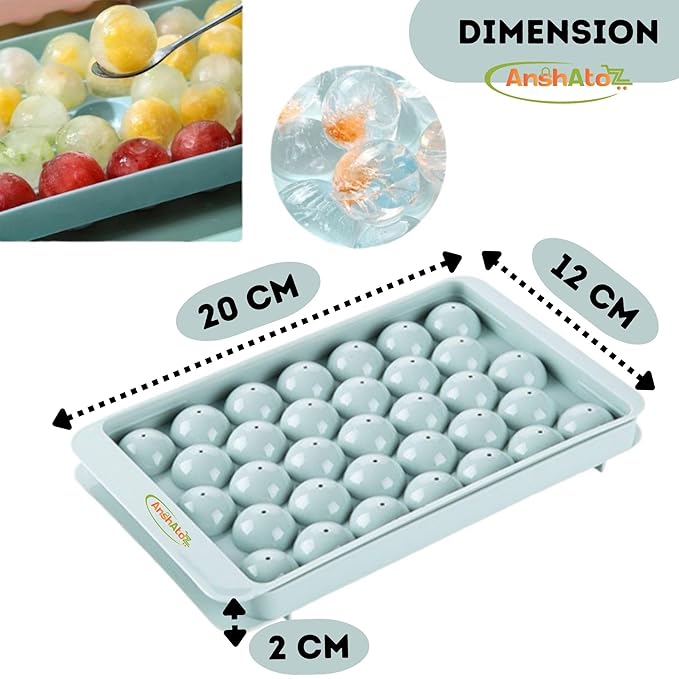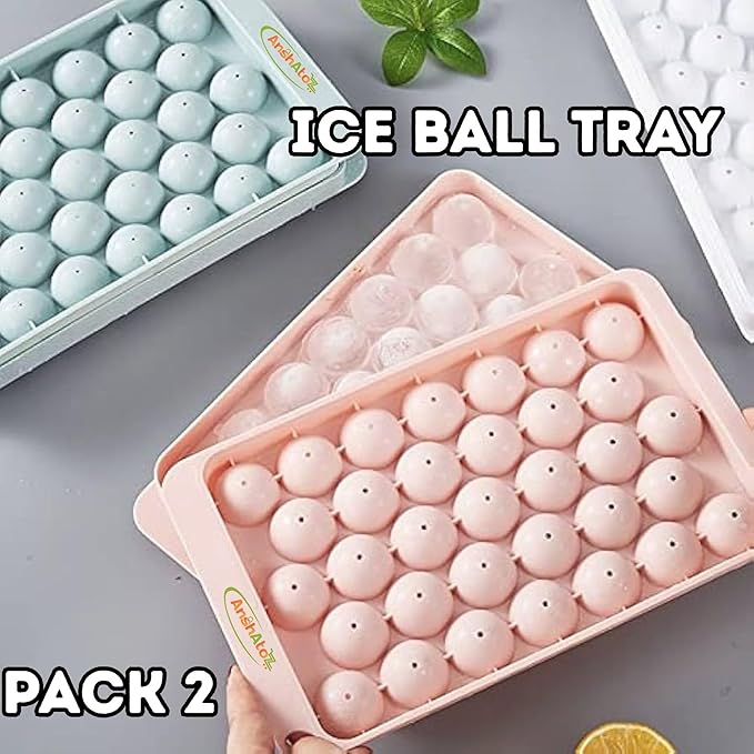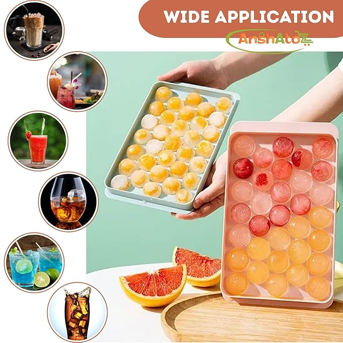 AnshAToZ Round ice Tray with lid Sphere Ice Ball Mold for Fresh Juice, Mocktails, Whiskey, Cocktails, Tea & Coffee. 33 Cavity Flexible ice Cube Tray for Freezer (Pack of 2)