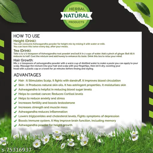 Name : Ashwagandha Powder for Sex | Withania Somnifera | Poison Gooseberry For Height Growth | Eating | Skin Care | Tea | Drink | Hair Care | Immunity Booster – 100 Gram(Pack of 2)