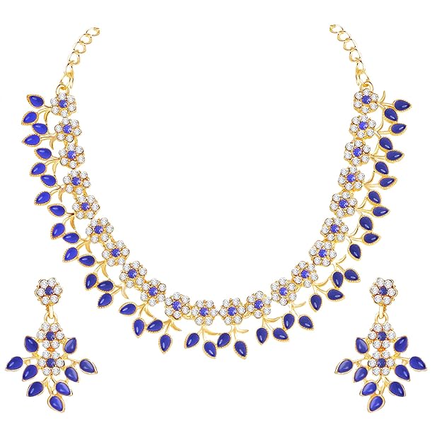 - Elegant Design: Atasi International presents a Lovely Blue Leaf Design Gold Plated Alloy Princess Style Necklace Set for Women, featuring a stunning and intricate design that adds a touch of elegance to any outfit.