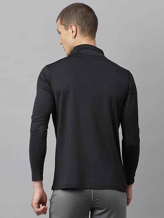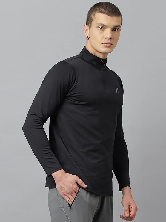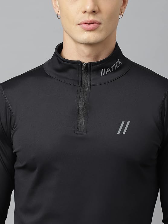 ATICX Men’s Slim Fit Polyester Full Sleeve T Shirt – Compression Tight Top Base Layer with Zip for Gym, Cycling, Running