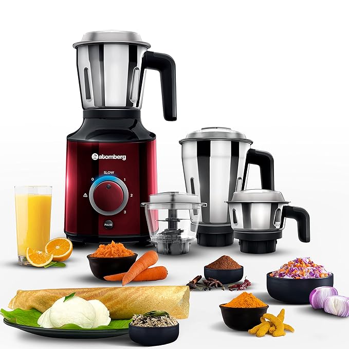 Atomberg MG 1 All-in-One Mixer Grinder for Kitchen with 4 Jars | Chopper Jar Inclusive | 4 Speed Control Powerful BLDC Motor with LED Indicators (Red Wine)
