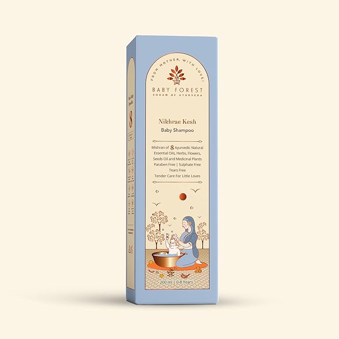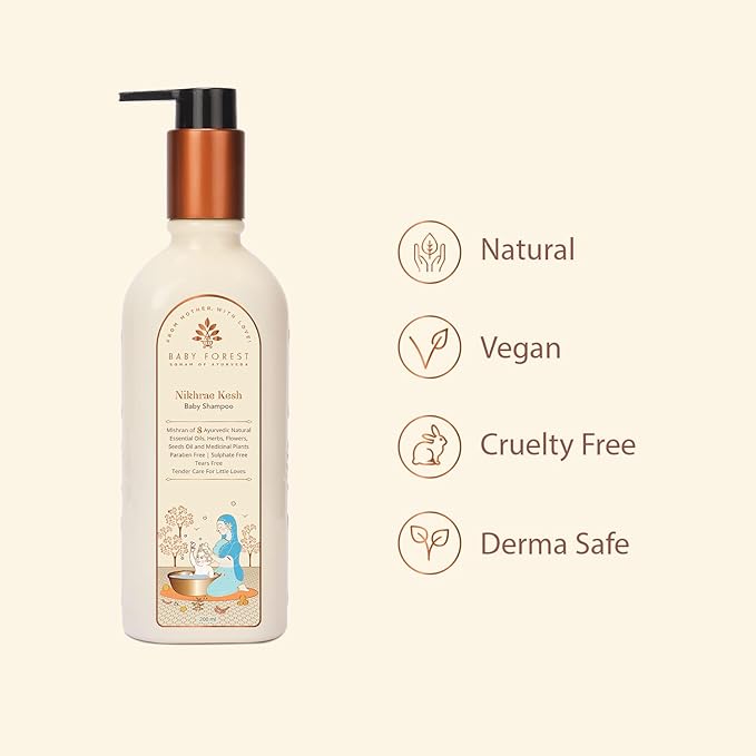 - HOW TO APPLY- Take an appropriate quantity of Baby Forest Nikhrae Kesh Baby Shampoo, rub it in your palms to form a light lather, and gently massage it on your baby’s scalp & hair.