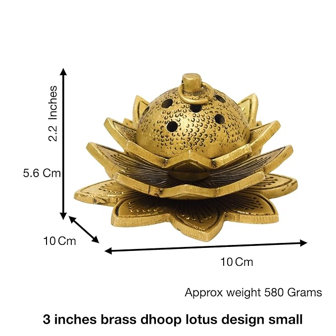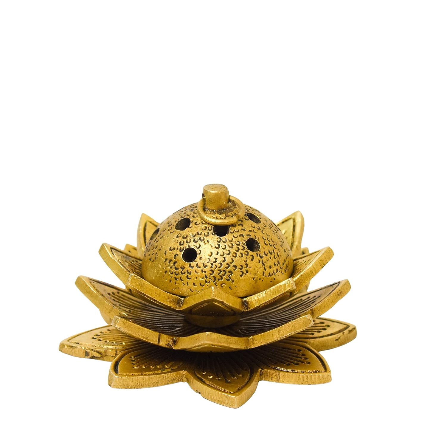 Bhimonee Decor Lotus Design Brass Agarbatti/Dhoop Holder, Home Décor, Gift & Puja, 580 gm, 2.2 inches, Brass Black Antique Finish, 1 Piece