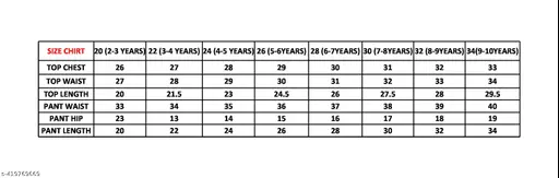 4-5 Years (Top Bust Size : 28 in, Bottom Waist Size: 29 in, Bottom Hip Size: 14 in)