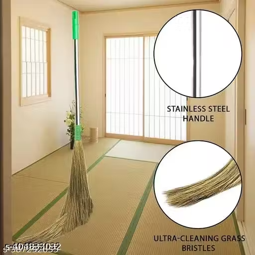 Name : Broom PhoolJhadu with Natural Shillong Long Grass 21 cm Plastic Handle Stick, Cleaning, Dust Removal & Easy Floor Sweeping(pack of 01)