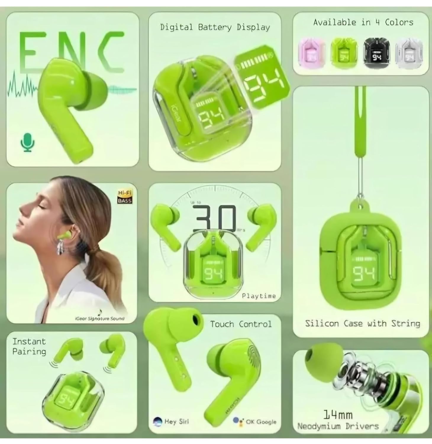 CHACHINE ENTERPRISE UltraPods Max True Wireless Earbuds with Bluetooth 5.3, Enhanced Sound Quality, Touch Control,Battery Life, Noise Cancellation & Comfortable Fit (Green)