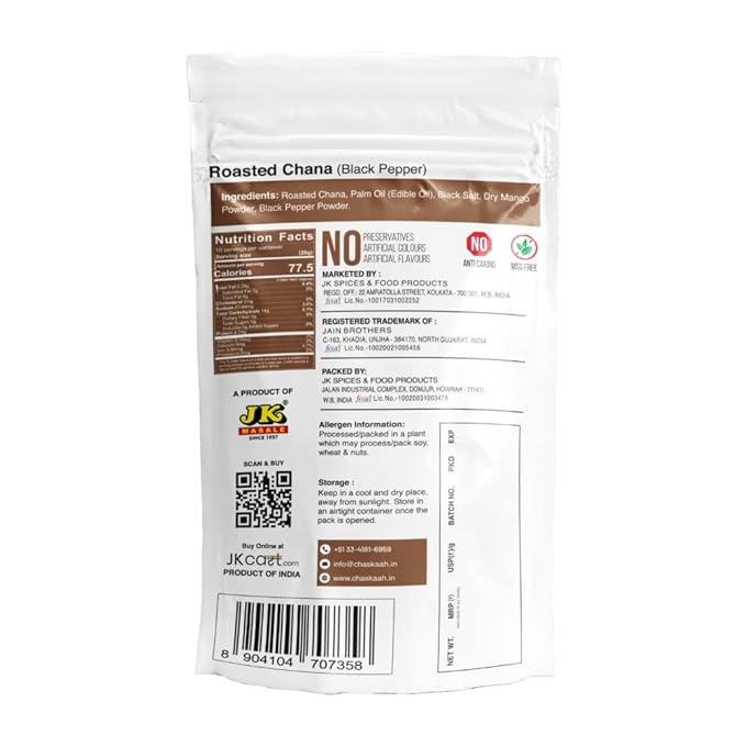 Black Pepper Chana 200g by JK | Bhuna Chana | Roasted Masala Chickpeas | Roasted Chana | NO MSG | Vegan | Not Fried | Jain