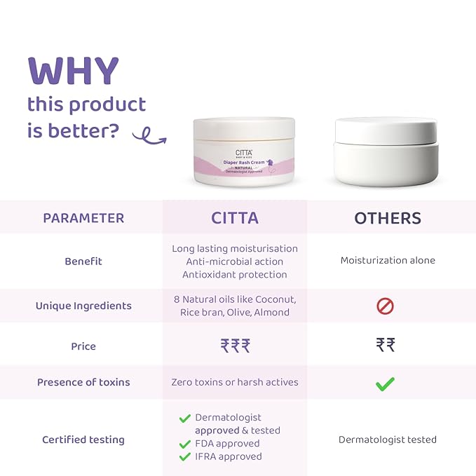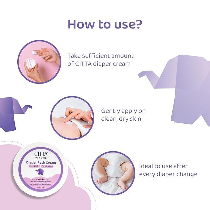 CITTA | Diaper Rash Cream | Treat & Heal Rashes and Inflammation| Diaper Rash Cream with Zinc Oxide & Chamomile| | 5X moisture-rich| | 50g | Baby products | Diaper cream for babies