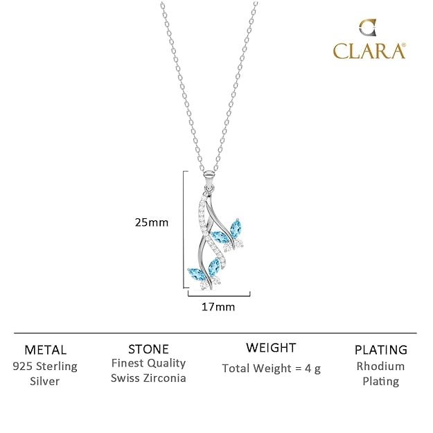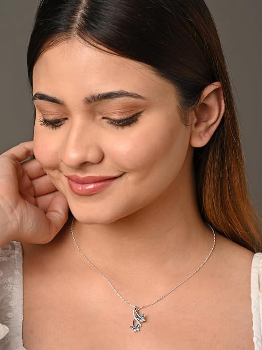 Clara 925 Sterling Silver Butterfly Pendant Earring Chain Jewellery Set | Rhodium Plated, Swiss Zirconia | Gift for Women & Girls