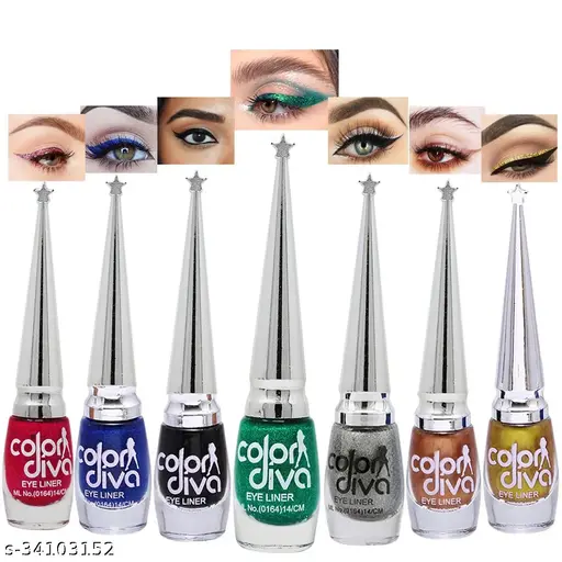 Name : Color Diva Eye Liner, Water Resistant, Long-Lasting, Pink, Blue, Green, Grey, Shade-101K|G|S|L|M|I|N|, 6ml Each