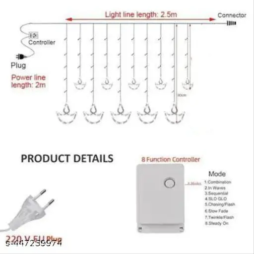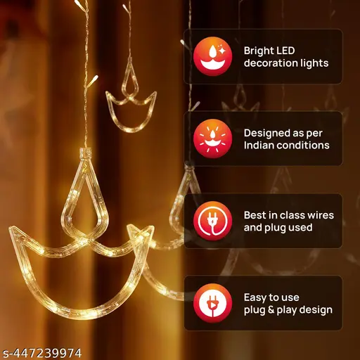 Name : Decorative Festive Diya Shaped LED Diwali Lights Curtain Diwali Home Decor