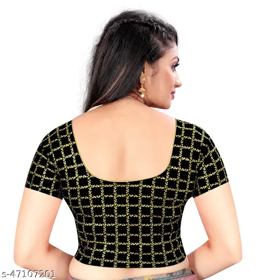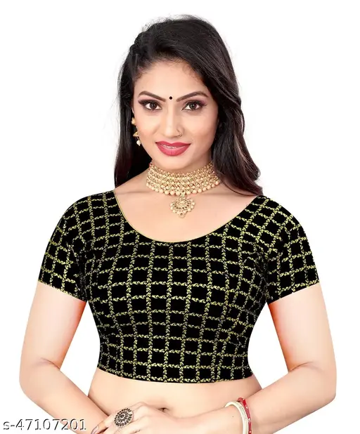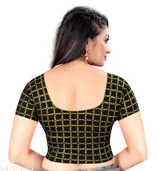Name : Designer Foil checkered round neck stretchable Blouse