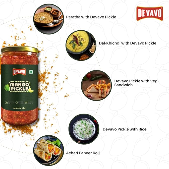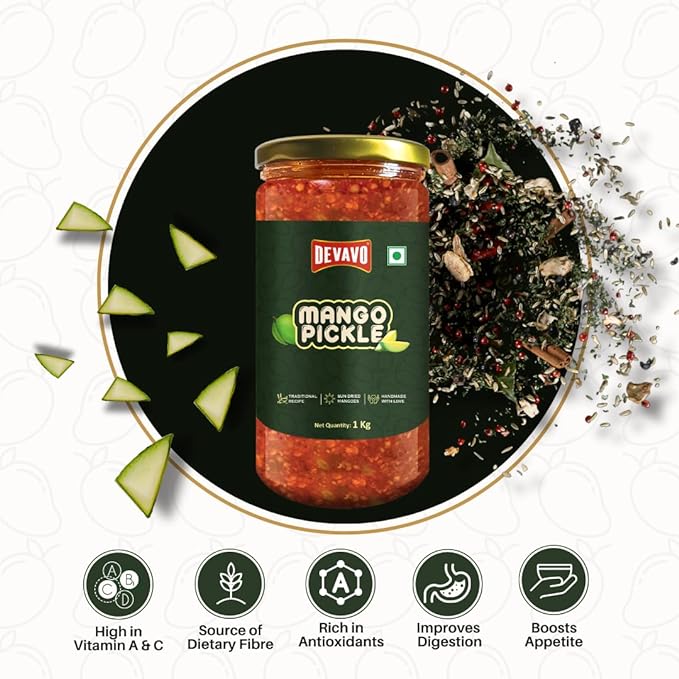 Devavo Mango Pickle 1 Kg | Sun Dried Mangoes | Traditional Recipe | Handmade with Love | No Artificial Colour & Flavour
