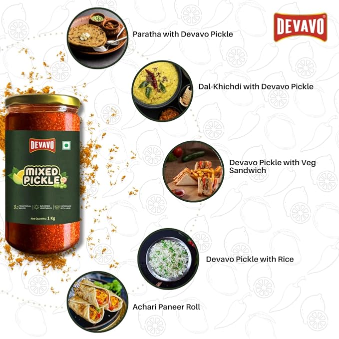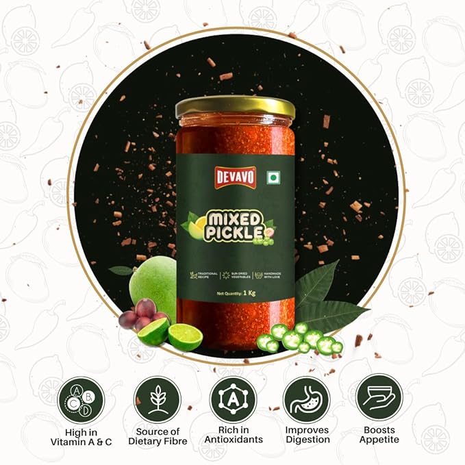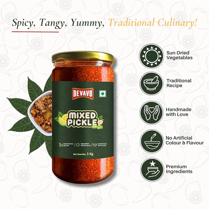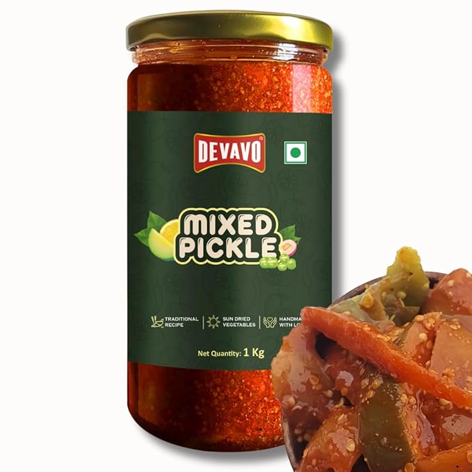Devavo Mixed Pickle 1 Kg | Sun Dried | Traditional Recipe | Handmade with Love | No Artificial Colour & Flavour