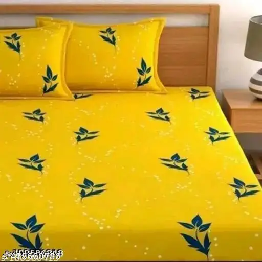 Name : Elastic Fitted Glace-Cotton Bedsheet For King Size Double Bed With 2 Pillow Covers