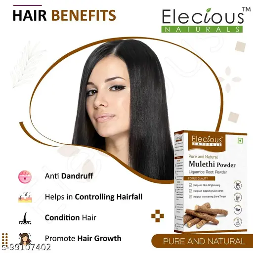 Name : Elecious Mulethi Powder For Body, Skin, Face and Hair (200 Grams), Skin Whitening | Yashtimadhu Powder, Liquorice Powder for Eating