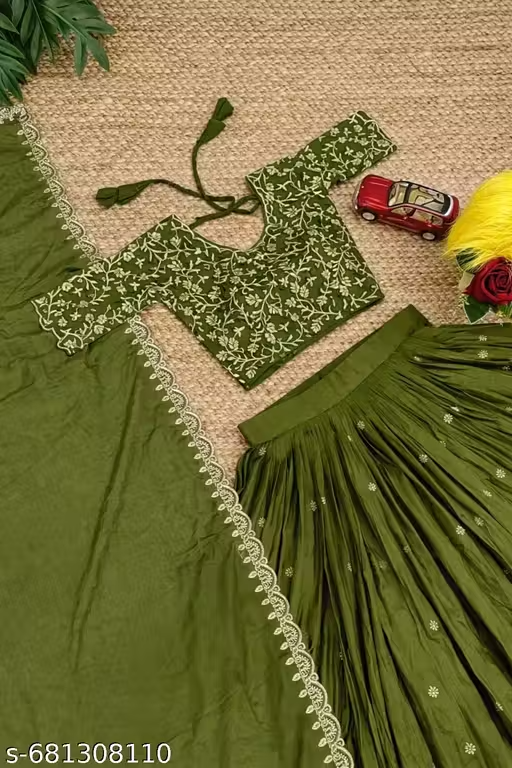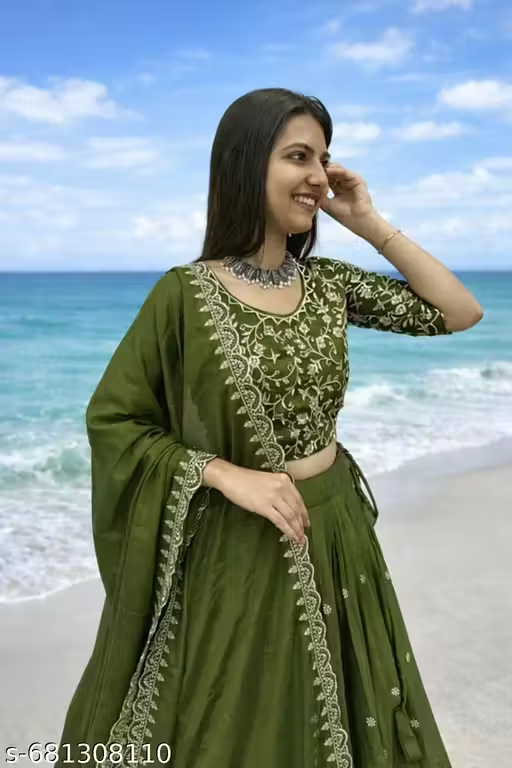 Be the first to review “Embroidered Round-Neck Semi-Stitched Lehenga & Unstitched Blouse With Dupatta”