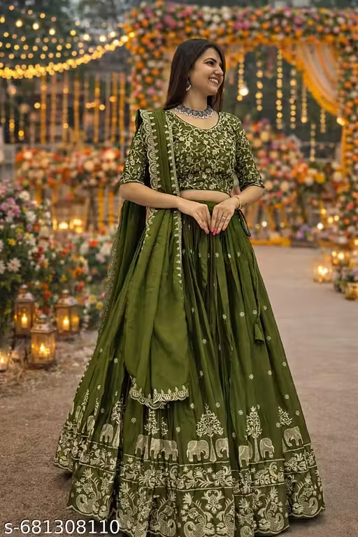Lehenga is Semi-Stitched which can be fitted up to 42 inch Waist Size.