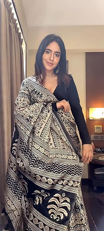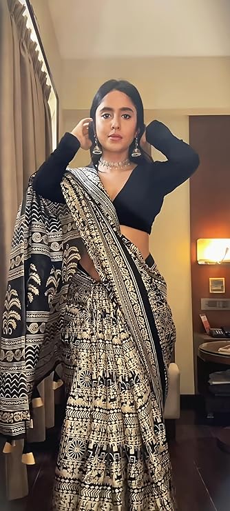 • Saree Details || Saree Fabric :- Art Silk | Saree Pattern :-Printed | Saree Work :- Tassel | Saree Length :- 5.5 Meter | Saree Type :-Kalamkar | Saree Color : Black ||
