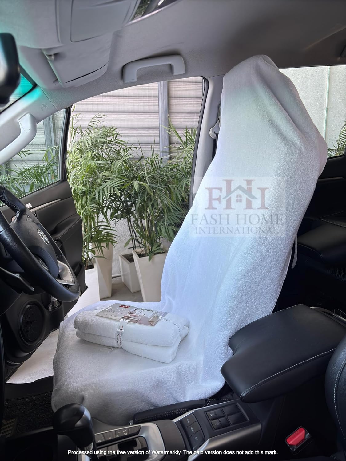 FASH HOME INTERNATIONAL 100% Superfine Cotton Solid Large Luxury Office Chair Towel/Car Towel,Car Seat Cover with Tie Knot 550 GSM – (Pack of 1, White) Original Product AS PER Picture Shown