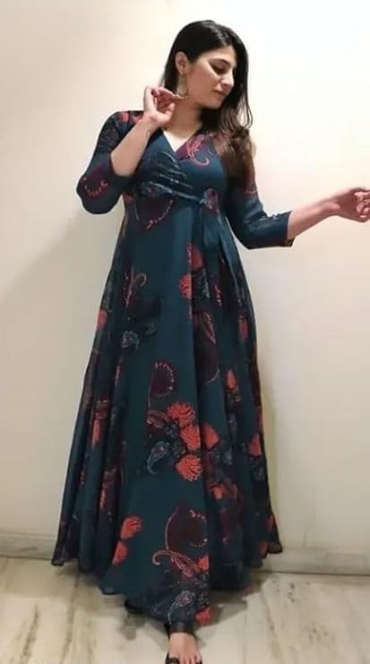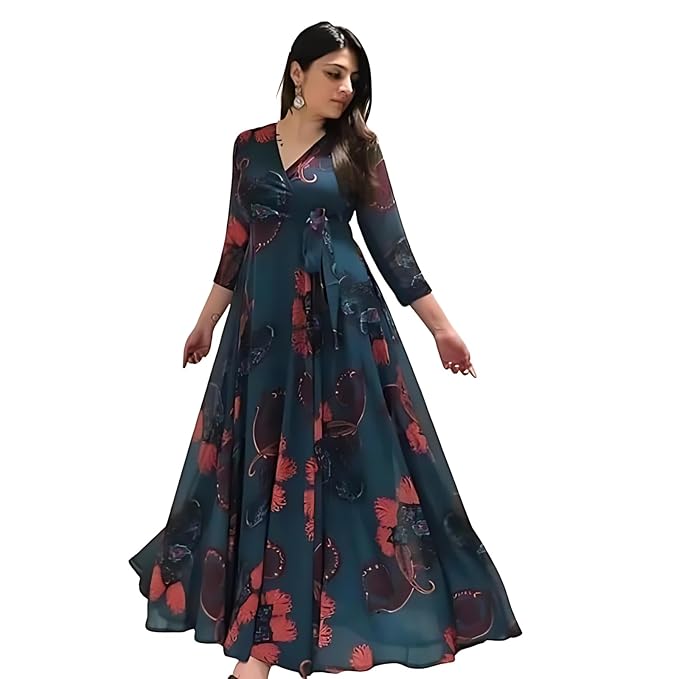 - Fashion2wear Women’s Georgette V-Neck Gown: Effortlessly stylish fit and flare silhouette crafted from luxurious georgette fabric.