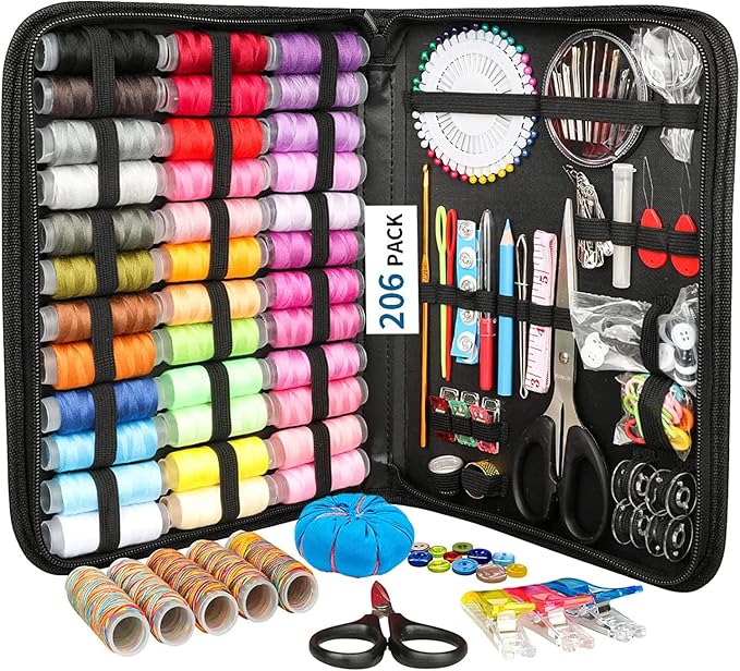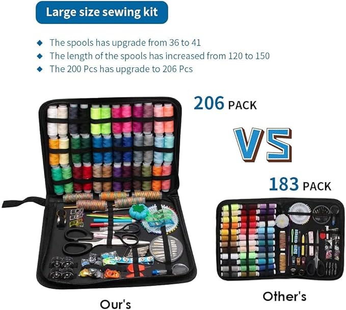 • 206 Pack Premium Sewing Kit: This sewing kit contains near all the accessories you could ever need, it’s also the most accessories in sewing kit on Amazon. Compared with the conventional big kit on Amazon, we have 5 multicolor thread, 2 size clips, 2 size knitting needles, 10 different size colorful buttons and 2 needle threader. Provide you with better service.