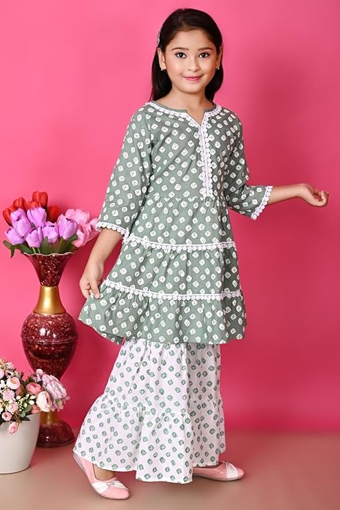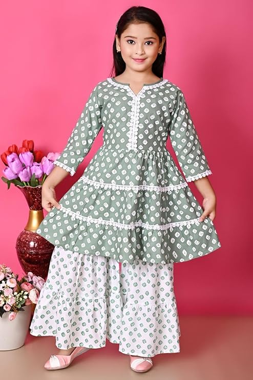 • Item part number ‏ : ‎ VNECK-KURTI PLAZO-Green12-13Y