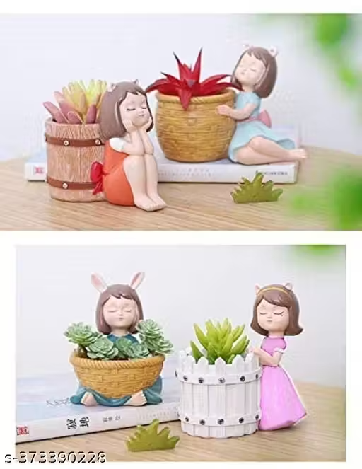 Name : Flower Pot Girl Set of 4 In Multi Color(plant not include) Tanish Handicraft