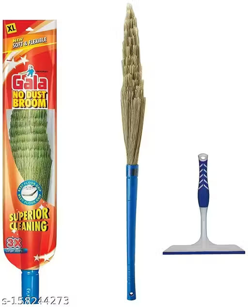 Name : Gala No Dust Broom XL for Floor Cleaning, Long Handle Broom Stick for Home Floor Cleaning, Jhadu for Home Cleaning, Made of Washable Fibers & Ezee Sqeezee Wiper for Kitchen top and Glass Cleaning