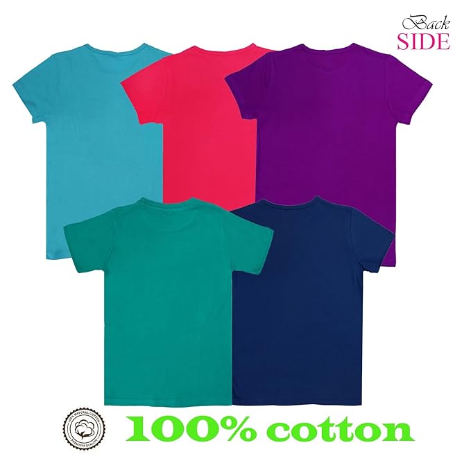 Girls Round Neck Half Sleeve T-Shirt Set – Regular Fit, Pure Cotton, Multi-Vibrant Colors – Made in India (Pack of 5)