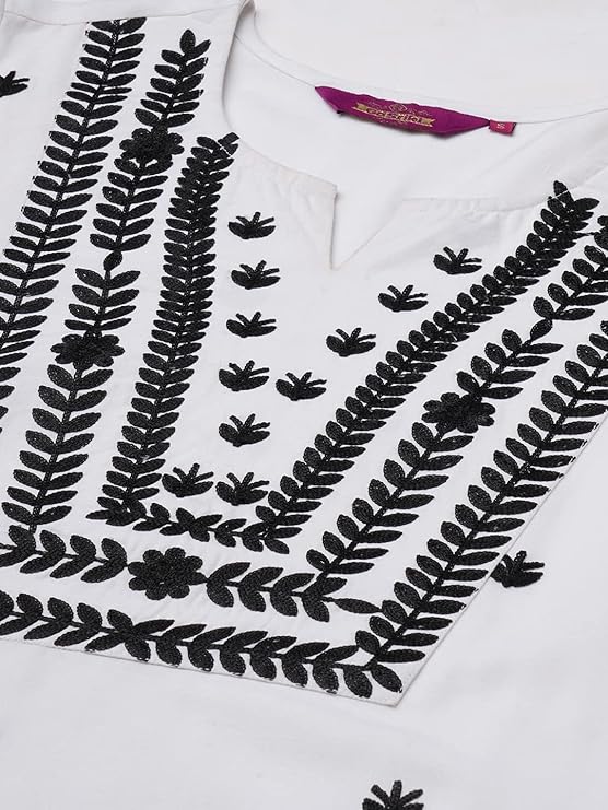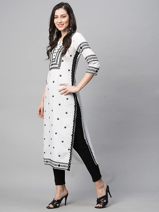 GoSriKi Women’s Cotton Blend Chikankari Embroidered Straight Kurti
