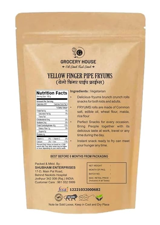 Be the first to review “GROCERY HOUSE Brunch Crunch Rolls Ready to Fry Papad Indian Snacks (Yellow Finger Pipes) (900 Grams)”