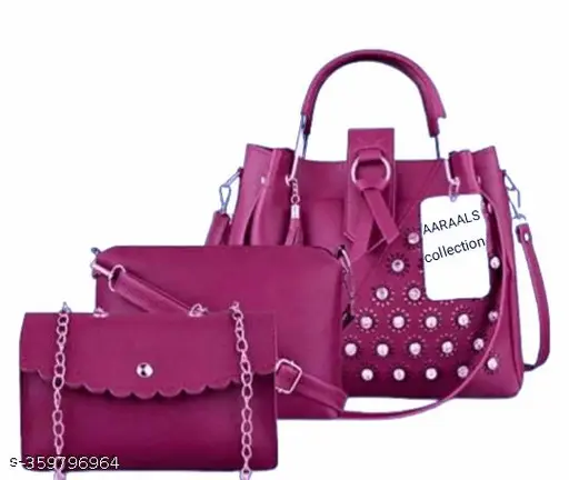 Handbag for girls and women’s top collection for girls Bag for womens beautiful new model and best design for girls and women’s top collection handbag pack of 3 good product meroon color very nice looking so good product very very nice design (14 inchi Haight 15 inchi length 4 inch width size Regular ) material Daball polis material tricort febric 2 zip compartment 2 argesteba sling bags 30 stone dimond 2 sling bag for girls 1 Daball polis cine galaxy watch betar bag best quality and best price for girls and women’s top collection for India’ happy to selling selling sailing