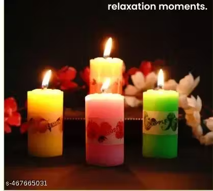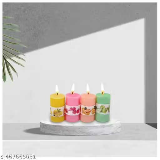 Name : Highly Fragrance Mini Pillar Candle Multi Colour Set of 4 ( 6.5 cm By 3.5cm Each )