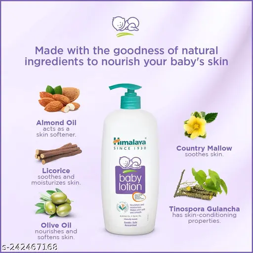 Himalaya’s Baby Lotion keeps your baby’s skin soft and supple and protects it from infection. It combines naturally derived ingredients to gently moisturize delicate skin, leaving it soft all day long. Clinically proven to be mild, it is gentle enough for newborns. Enriched with almond oil that restores skin’s moisture. Olive oil, which improves skin lusture and Yastimadhu and Country Mallow, which soothe the skin.