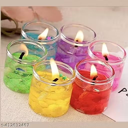 Name : Home Decor Luxury Small Multicolour Smokeless Decorated Mini Cute Little Glass Jelly Gel Candles for Home Decor Diwali Decoration,Spa,Birthdays Party,Festivals (Pack of 24)