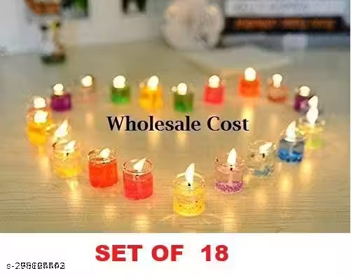 Name : Home Luxury Small Multicolour Smokeless Decorated Mini Cute Little Glass Jelly Gel Candles for Home Decor Diwali Decoration,Spa,Birthdays Party,Festivals (Set of 18 Pieces)