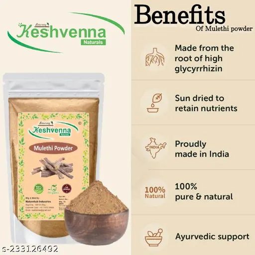 Product Name : Keshvenna Naturals 100% organic Mulethi – Yashtimadhu – Licorice – Glycyrrhiza Glabra powder, For Skin Whitening, Licorice Powder For Body, Skin and Hair -400gm