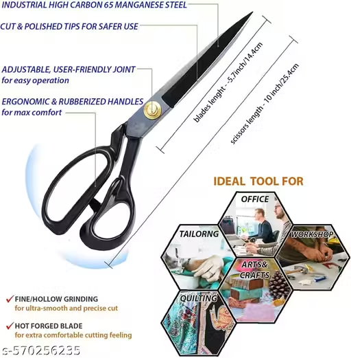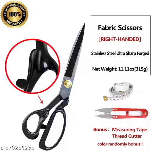Name : Khiza® Premium Scissor with Rubber Handle Grip Used for Cloth Cutting, Tailoring, Sewing Clothes Cutting Paper cutting for home and office use Size 10 inch scissor, Cutter and Inch Tape Free